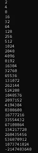 Múltiplos de 2 com um loop infinito. Escreva um programa que continue imprimindo os múltiplos do inteiro 2, a saber 2, 4, 8, 16, 32, 64 e assim por diante. Seu loop não deverá terminar (ou seja, você deverá criar um loop infinito). O que acontece quando você executa esse programa?