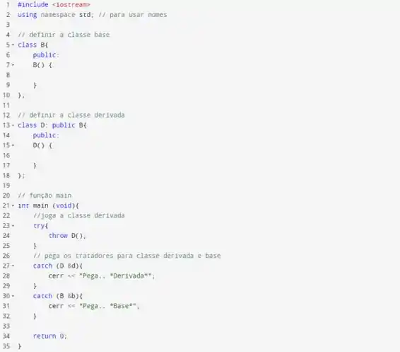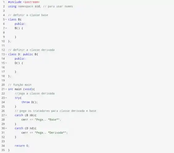 3. Defina dois manipuladores catch, um para capturar a classe base e outro para capturar a classe derivada.