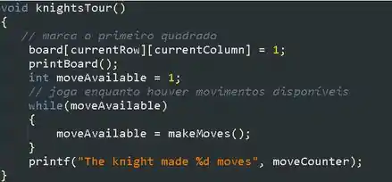 A função knightsTour moverá o cavalo enquanto houver um movimento disponível.