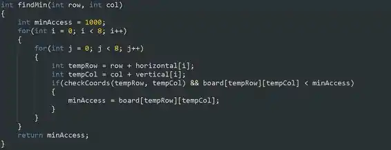 - Adicionaremos uma função findMin que olhará para frente e verificará qual quadrado tem a menor acessibilidade do quadrado fornecido.