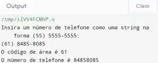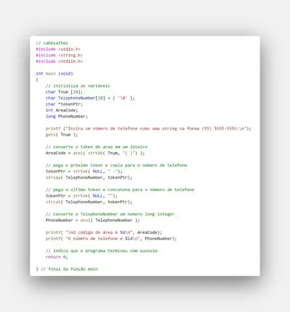 como uma string na forma (55) 5555-5555. O programa deverá usar a função strtok para extrair o código de