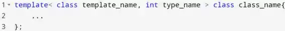 O template recebe um parâmetro de tipo (class template_name) e um parâmetro de constante não tipo (int type_name) e usa o tipo template_name e um inteiro constante type_name ao instanciar.