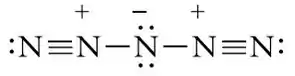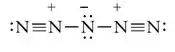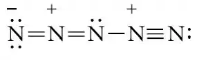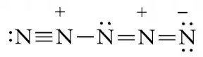 Em 1999, Karl Christe sintetizou e caracterizou um sal do cátion , no qual cinco átomos de N estão ligados formando uma cadeia longa. Este cátion é a primeira espécie que contém unicamente nitrogênio a ser isolada em mais de 100 anos. Dê a estrutura de Lewis mais importante desse íon, incluindo todas as estruturas de ressonância equivalentes. Calcule as cargas formais de todos os átomos.