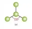 Reparem que no nosso modelo, ele está distorcido. Se não houvesse nenhuma força distorcendo, aqui era para ter 120º entre os átomos de ligação.