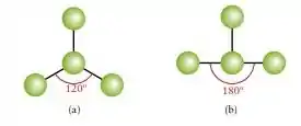 Porém, reparem que entre 2 átomos está com ângulo de 90º e de 180º. Para isso estar acontecendo é por que há uma força resultante atuando.