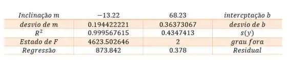 - Para o cálculo do desvio padrão da inclinação e do intercepto