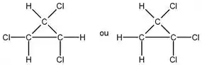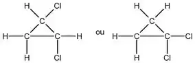Ela pede pra gente dar os produtos somente, de uma cloração do ciclo-propano, onde ela vai substituir, um a um, o Hidrogênio ligado ao Carbono H–C pelo Cloro Cl–C.