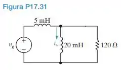 a) Use o método da transformada de Fourier para calcular no circuito da Figura P17.31, se .