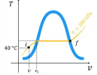 Um arranjo cilindro-pistão contém inicialmente de água líquida a e . Calor é transferido à água a pressão constante até que todo líquido seja vaporizado.