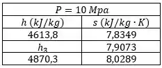 Considere uma usina de potência a vapor operando entre os limites de pressão de e . Vapor d’água entra na bomba como líquido saturado e sai da turbina como vapor saturado. Determine a razão entre o trabalho produzido pela turbina e o trabalho consumido pela bomba. Assuma que todo ciclo seja reversível e que as perdas de calor da bomba e da turbina sejam desprezíveis.