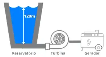 A energia potencial será transformada em trabalho. Isso que movimentará as pás da turbina. Então, o potencial de energia passa a ser: