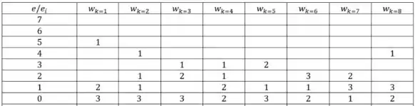 A questão nos informa que temos 8 níveis de energia e a energia total de um macroestado precisa ser , portanto, começando no 0 teremos a linha do 0 e depois teremos uma linha para cada nível gerando 8 níveis de energia. Ficando assim: